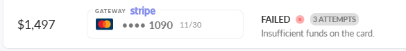 Payment decline reasons now show for each failed attempt. This can be viewed anywhere payments are displayed: in payment plan records, subscription records, order records, and in sales data for payment plans, subscriptions, and payments.